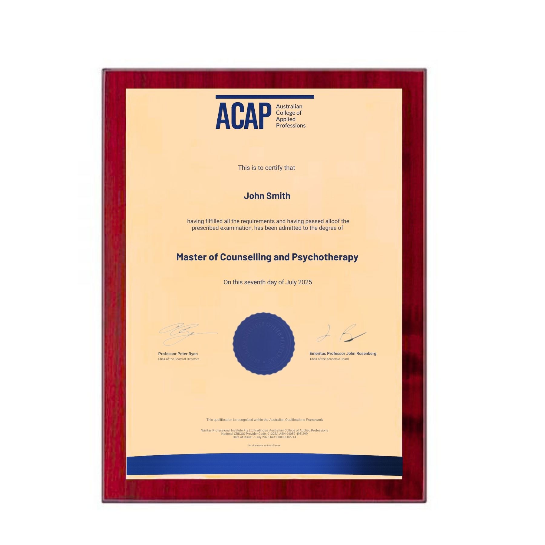 Rosewood Plaque-ASA Institute of Higher Education